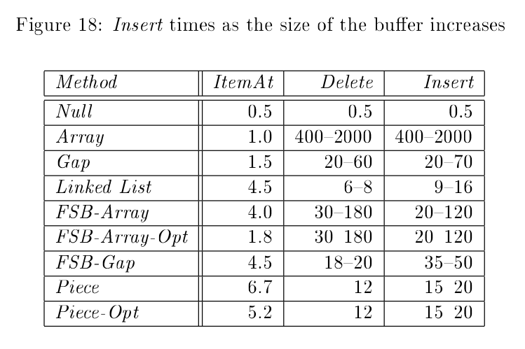 First of all, this is an amazing paper that overviews multiple data structures for a modern text editor, and mind I recall you, this is a paper from 1998.